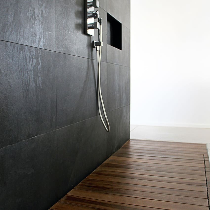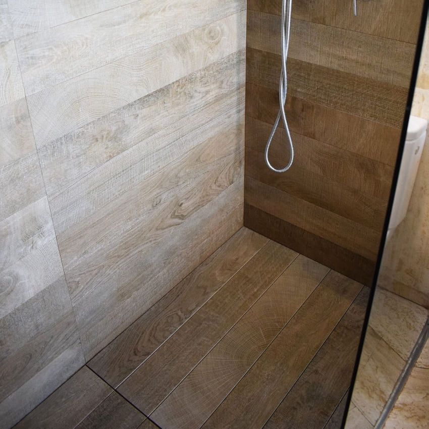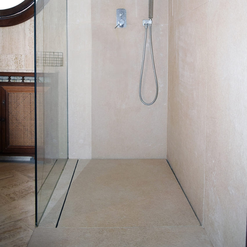 Voda se diskretno odvodi kroz fugne između keramičkih pločica, dok je nagib neprimetan ispod završne obloge. Rezultat je potpuno ravan, estetski besprekoran pod bez vidljivih rešetki ili klasičnih odvoda.
